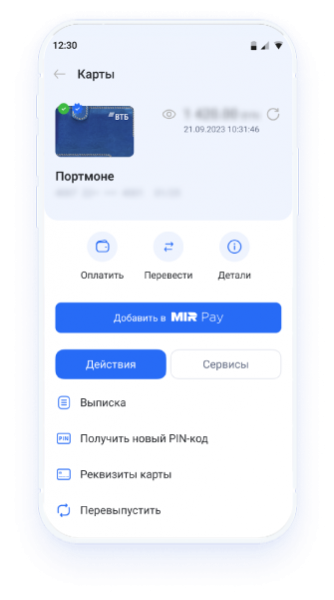 В приложение Mir Pay можно добавить любую карточку «Мир» ЗАО Банк ВТБ (Беларусь).